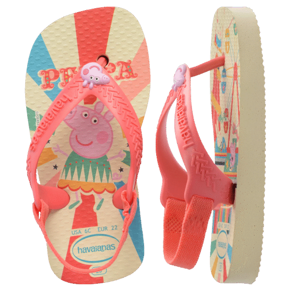 Para os pequenos que ensaiam os primeiros passinhos, o chinelo Havaianas Baby Peppa Pig é perfeito. Com a alta qualidade de sempre da Havaianas, a sandália tem um elástico na parte de trás, o que garante segurança e firmeza nos pés dos pequeninos. Uma sandália lúdica, confortável e especial para os bebês! Escolha já sua estampa favorita.