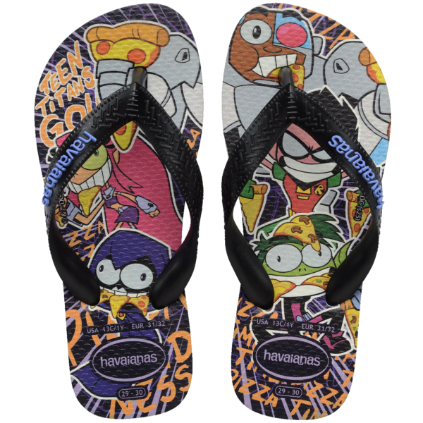 Os personagens clássicos da Warner agora estão nos pés dos pequenos! O chinelo Kids Top Warner vem com três estampas únicas e exclusivas para as crianças se divertirem: Jovens Titãs, o clássico Batman e o Tom & Jerry em um dia de surfe. Ultraconfortável, essa sandália ainda conta com sola antiderrapante feita 100% da famosa borracha Havaianas e tiras mais largas produzidas em cores contrastantes e com nosso logo em versão pop-up. Compre já a sua favorita.